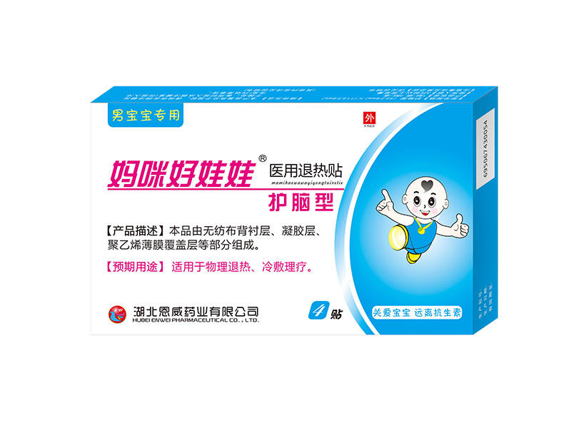 - 產品介紹【產品名稱】:媽咪好娃娃醫用退熱貼(男寶寶專用型)【型號規格】:4貼/盒、1貼/袋,(45±8mm)×(115±8mm)【適用人群】:3月齡以上男寶寶【[查看詳情]